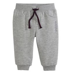 Complétez le dressing sporty de bébé avec ce pantalon de jogging. Il est confectionné en molleton hyper confortable. Le pantalon de survêtement dispose d'un intérieur chaud, d'une taille et de bas de jambe en bords-côtes élastiqués. On note le cordon décoratif à la taille et le discret imprimé plac