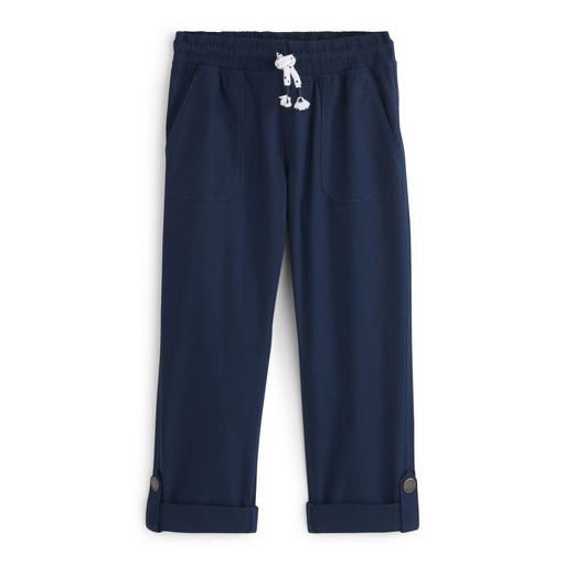 Les garçons optent pour un style décontracté cette saison avec ce joli pantalon en popeline ! On apprécie sa large taille élastiquée et le cordon à nouer passant sous coulisse à la taille. Ce pantalon dispose de 2 grandes poches avant et d’1 poche arrière. Malin, ce pantalon enfant retroussabl