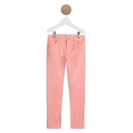 Ce pantalon twill fantaisie donnera un style moderne à votre fille à l'école ! Sa matière souple n'entravera pas ses mouvements dans la cour de récréation ! Il possède un joli coeur brillant sous la poche gauche.