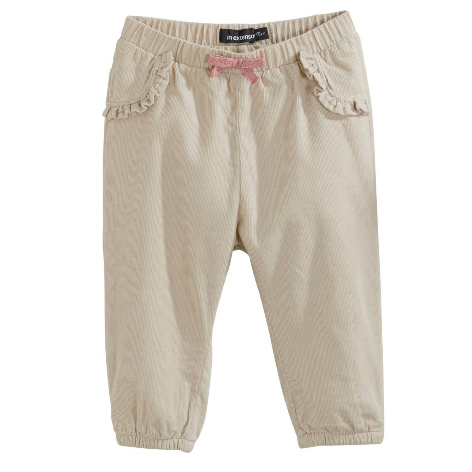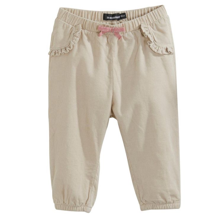 Ce pantalon en velours est à ajouter sans hésiter dans la penderie de bébé. Le pantalon bébé fille est doublé pour un maximum de confort. Il est réalisé en velours finement côtelé et offre une taille élastiquée ornée d'un nœud et d'un volant. On note les bas de jambe élastiqués. Il est facile d'entretien.