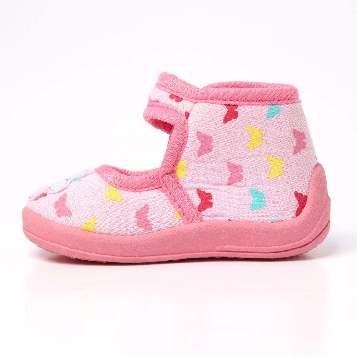 Ces chaussons roses sont confortables à souhait pour les pieds de bébé. Dessus textile imprimé avec motif placé. Ouverture pratique par une patte scratchée. Intérieur douillet textile. Semelle élastomère antidérapante pour ces chaussons bébé fille.