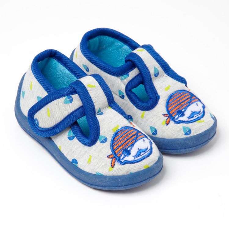 Ces chaussons bébé procurent tout le confort nécessaire pour rester à la maison. Dessus textile imprimé avec broderie fantaisie. Ouverture pratique par une patte scratchée. Intérieur douillet textile. Semelle élastomère antidérapante.