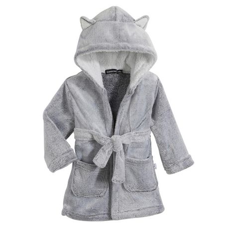 En savoir +Ce peignoir assure douceur et confort aux bébés, on l'adopte sans hésiter ! Il est confectionné en maille peluche, hyper douce. Le peignoir bébé garçon possède une capuche animée d'oreilles fantaisie et une ceinture à nouer. On note les deux poches.