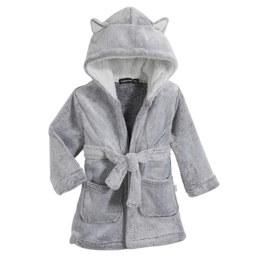 Ce peignoir assure douceur et confort aux bébés, on l'adopte sans hésiter ! Il est confectionné en maille peluche, hyper douce. Le peignoir bébé garçon possède une capuche animée d'oreilles fantaisie et une ceinture à nouer. On note les deux poches.