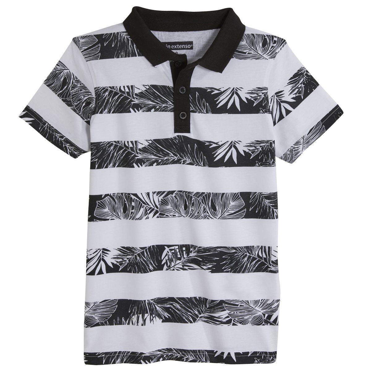 Ambiance tropicale assurée avec ce polo rayé garçon réalisé en coton. On aime : les feuilles tropicales imprimées sur les rayures. Le polo garçon offre une patte boutonnée et des manches courtes. On note les ouvertures de chaque côté de la base. Il n'y a pas d'étiquette dans le cou pour plus de c
