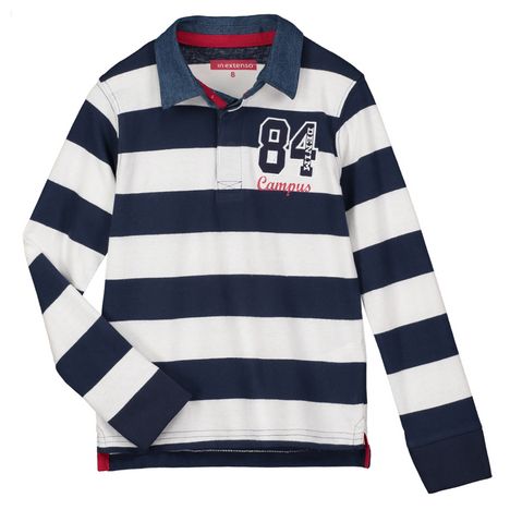 En savoir +La tendance rugby prend le dessus cette saison avec ce polo garçon à manches longues ! Jersey 100% coton, agréable à porter. Patte boutonnée et col en denim. Imprimé et broderie fantaisie sur la poitrine. Poignets resserrés. Il n'y a pas d'étiquette dans le cou pour plus de confort. Fentes de chaque côtés de la base.