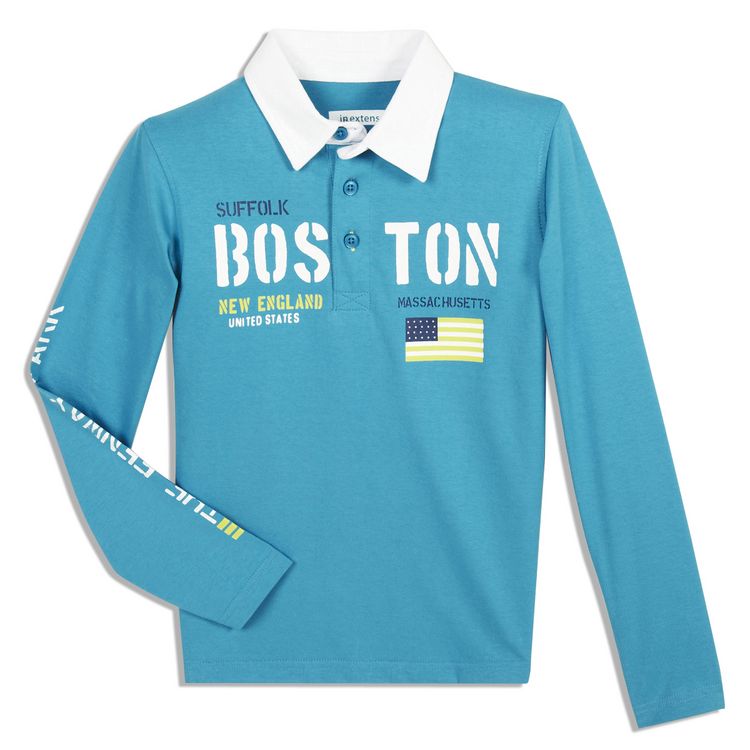 Les garçons aiment le coloris tendance et le style cool de ce polo ! 100% coton. Patte boutonnée. Col contrasté, manches longues. Imprimé fantaisie sur le devant et sur une manche. Il n'y a pas d'étiquette dans le cou pour plus de confort. Ce polo garçon est lavable en machine à 40°.