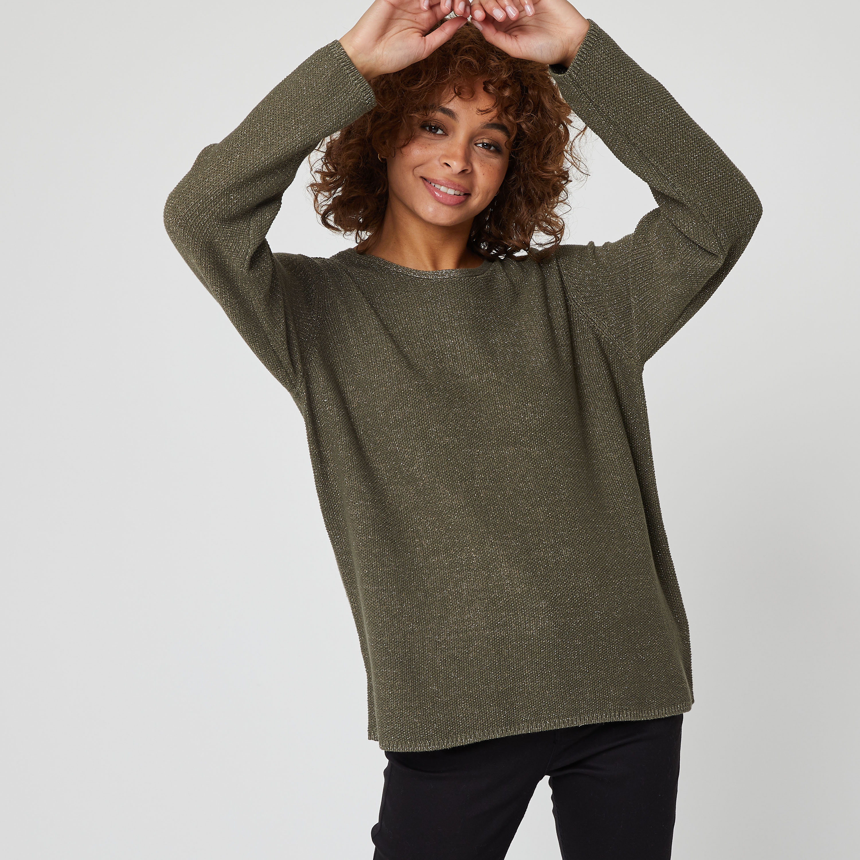 Incontournable basique du dressing, ce pull uni est conçu en maille à point de riz avec de jolis détails brillants.
