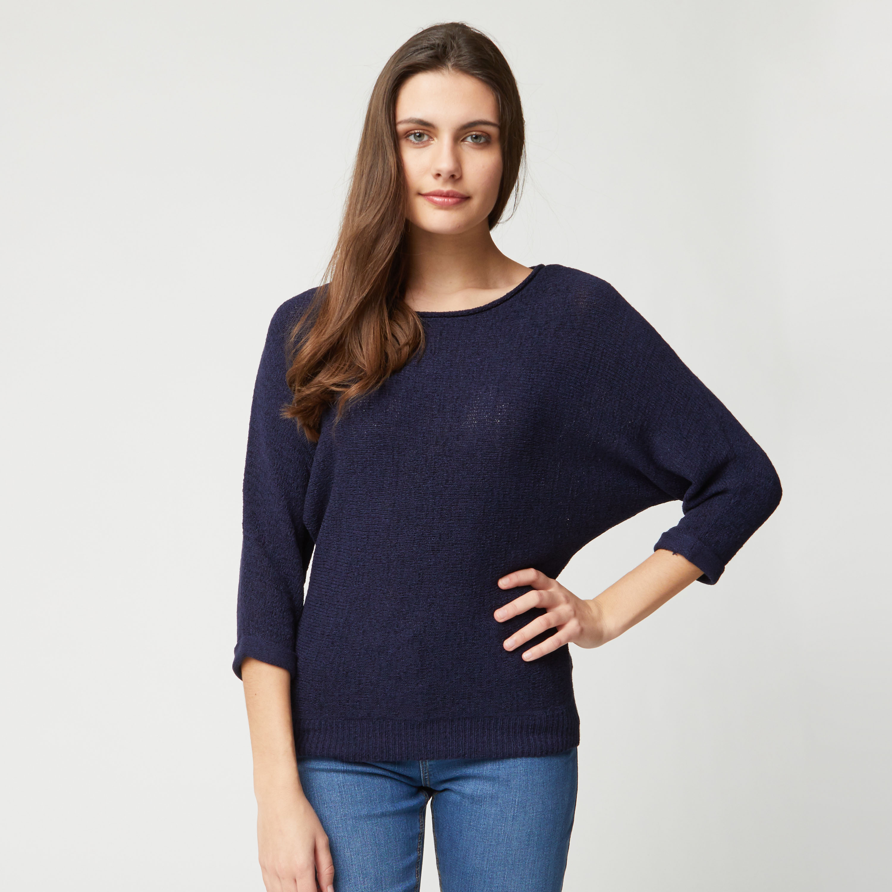 Pull évasé manches 3/4 marine femme