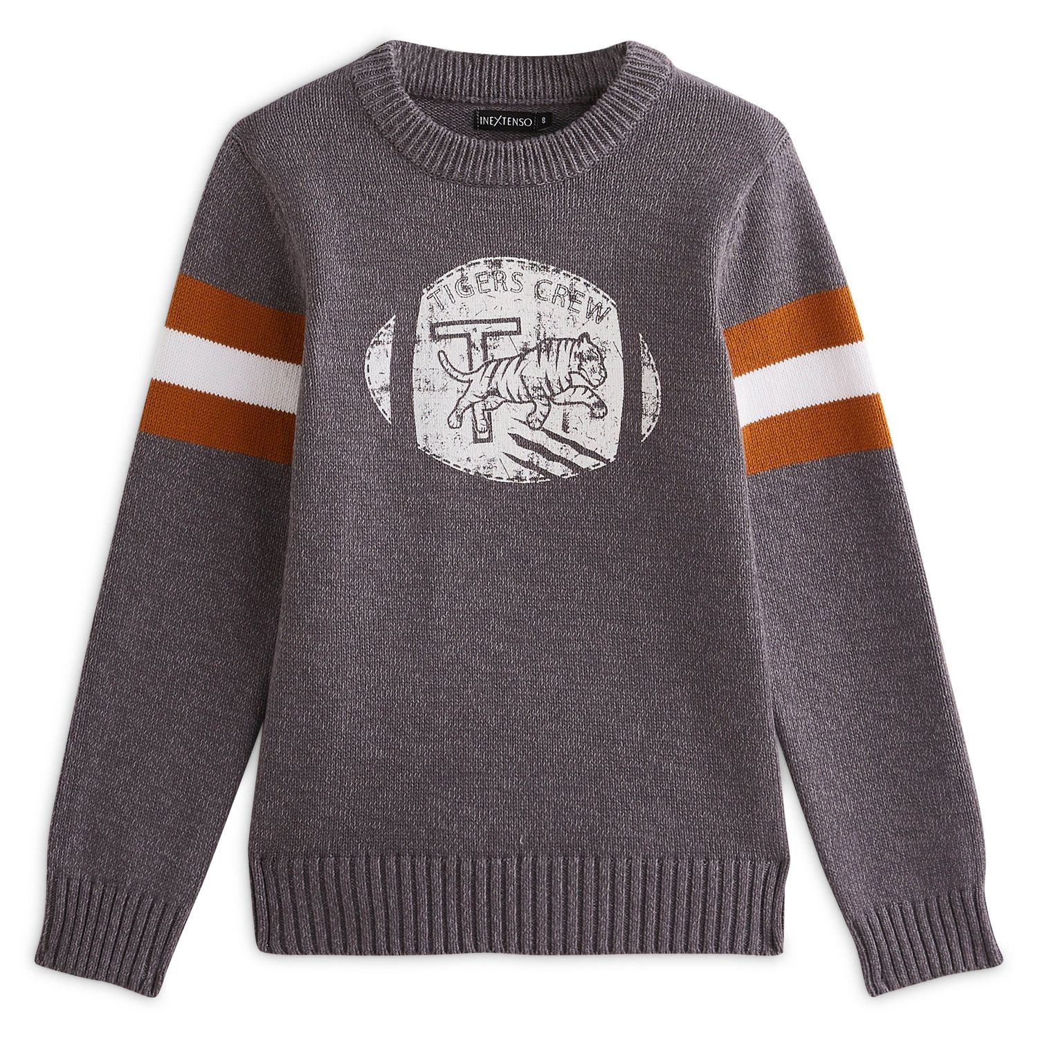 Ce pull imprimé apporte une touche féroce aux looks des garçons. Il est confortable et doux. Le pull garçon possède un col rond et des manches longues. On note les imprimés fantaisie football américain. Un pull garçon qui aura du succès à coup sûr !