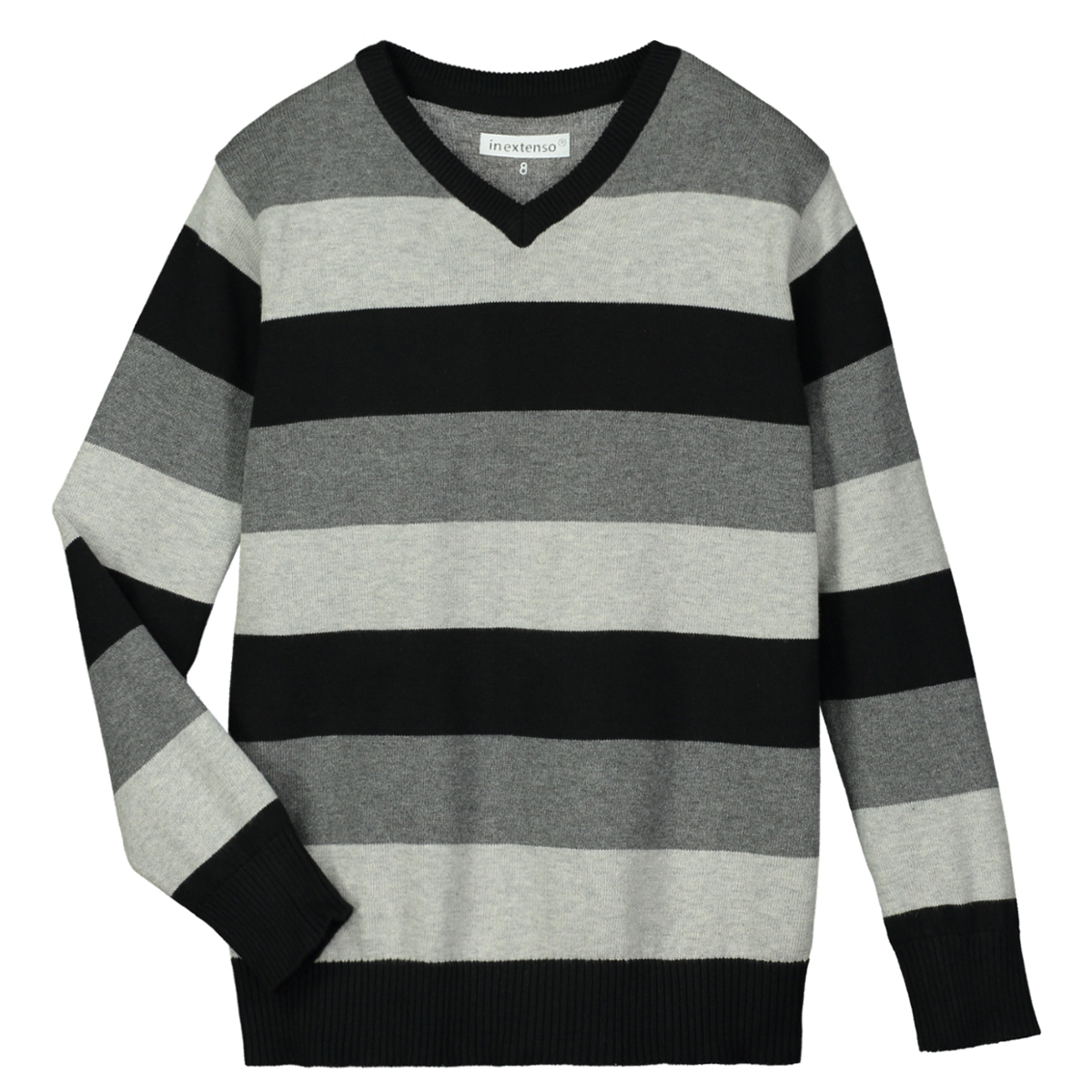 Une valeur sûre du dressing des garçons : le pull à col V rayé ! Maille fine et douce. Agréable à porter. 100% coton. Manches longues. Finition bords-côtes. Pour encore plus de confort, il n'y a pas d'étiquette dans le cou. Lavable en machine à 40°.