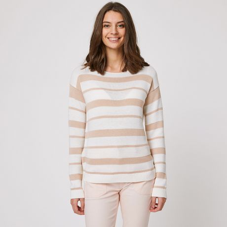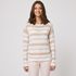 Pull manches longues col bateau à rayures ecru femme