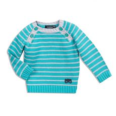 Nouvelle saison rime avec nouveau pull pour bébé ! Pull rayé. Tricot agréable à porter. Ouverture boutonnée de chaque côté du col. Col rond, manches longues. Petit imprimé fantaisie en bas sur le devant. Ce pull bébé garçon est lavable en machine à 40°.