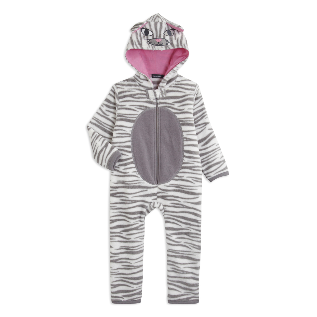 Les petites filles vont adorer se glisser dans cette combinaison-déguisement chat ! Toucher doux effet peluche. Agréable à porter. Ouverture zippée sur le devant. Capuche doublée en jersey. Patte fermée par une pression au niveau du cou. Animation sur la capuche. Finitions bords-côtes. Ce surpy