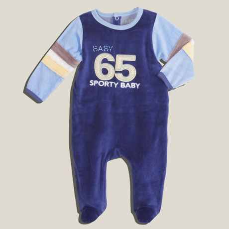 Bébé aura l'air d'un grand sportif pour aller dormir avec ce pyjama ! Velours lisse agréable à porter. Ouverture par un pont et un dos pressionnés pour un habillage facile. Bandes cousues sur les manches. Animation brodée sur le devant. Ce dors-bien garçon est lavable en machine à 30°.