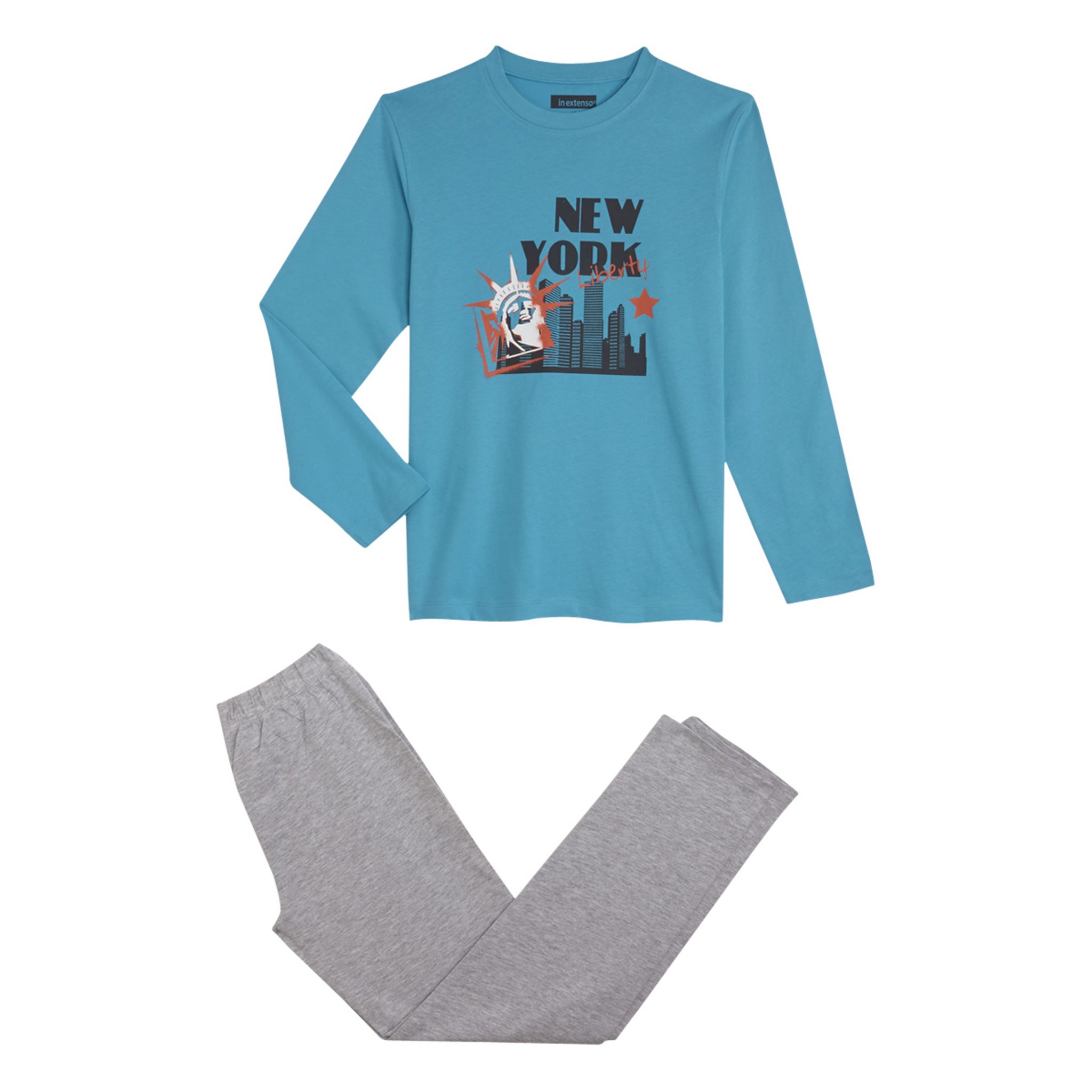 Les garçons rêvent de New-York City avec ce pyjama léger et coloré ! Jersey 100% coton, agréable à porter. Haut : col rond, manches longues, imprimé sur le devant, il n'y a pas d'étiquette dans le cou pour un confort complet. Pantalon uni, taille élastiquée. Ce pyjama garçon est lavable en machine à