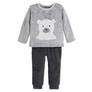 En savoir +Rien de mieux pour les nuits d'hiver que ce pyjama bébé garçon 2 pièces ! Il est réalisé en maille peluche toute douce. Le haut du pyjama bébé possède une ouverture pressionnée sur l'épaule, un décor fantaisie, un col rond et des manches longues. Le pantalon à pieds possède une taille élastiquée assurant un bon maintien.