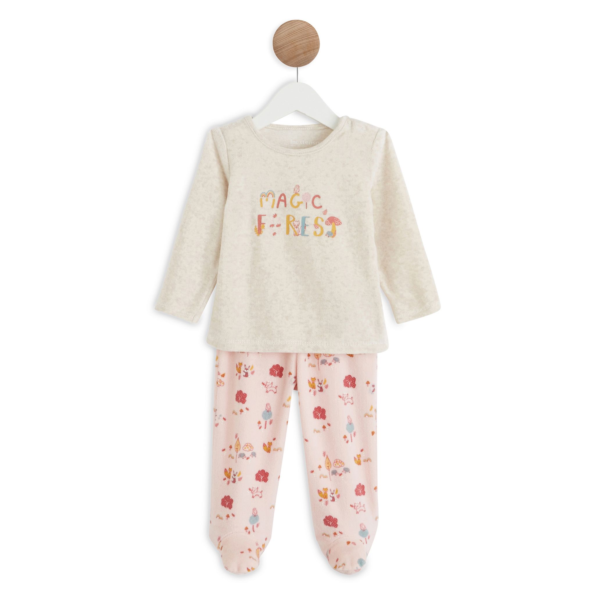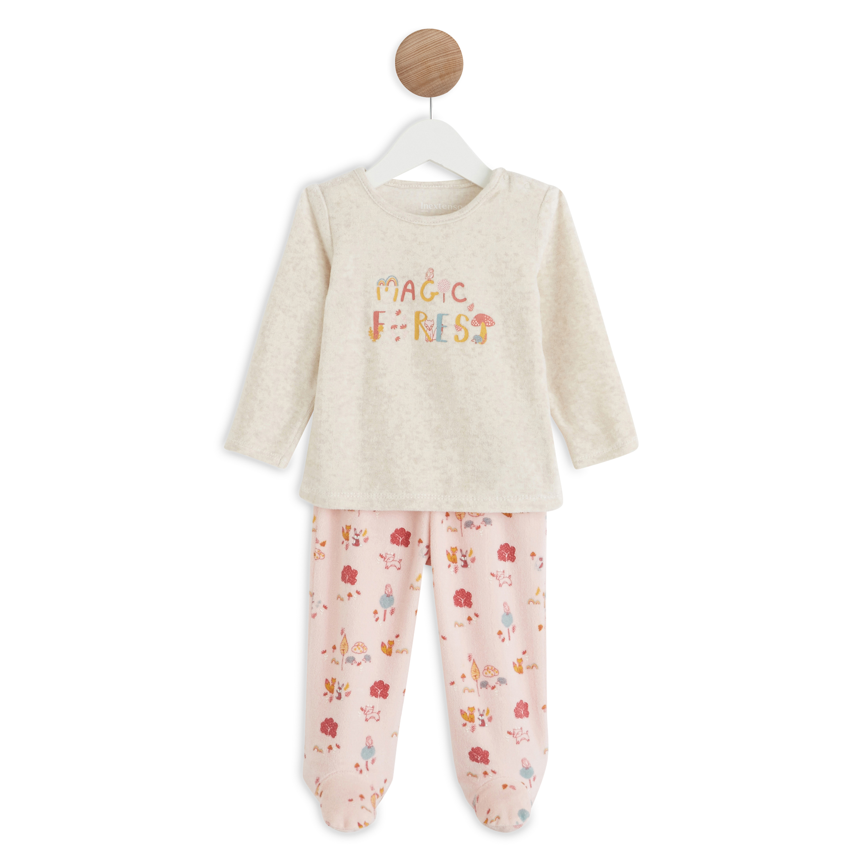 En savoir +En velours tout doux et chaud, ce pyjama 2 pièces est à croquer avec ses jolis motifs sur le thème de la forêt magique. Parfait pour habiller bébé lorsque les températures grimpent, ce pyjama comporte un haut à manches longues avec une ouverture pressionnée à l’épaule, et un pantalon à pied. Le pyjama ne comporte pas de pieds pour les tailles de 18 mois à 4 ans (86 à 104 cm).
