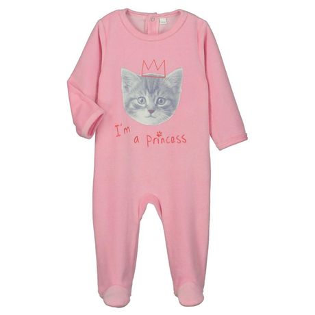Vous avez trouvé le pyjama préféré de votre petite princesse ! Pyjama bébé fille en velours doux et confortable. Col rond. Ouverture par pont et dos pressionnés, pour un change facile. Animation "chaton" sur le devant. Ce dors-bien fille est lavable en machine à 40°.