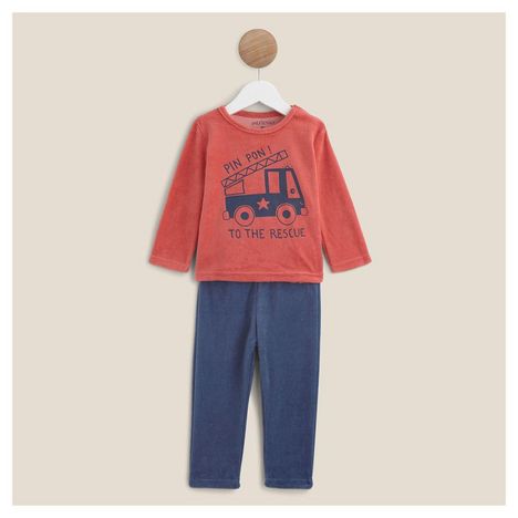 Bébé aime dormir entouré de douceur et au chaud avec ce pyjama en velours ! Le pull à manches longues affiche un adorable imprimé camion de pompier et dispose d'une ouverture pressionnée sur épaule pour simplifier l'enfilage. Pour le confort de bébé, le pantalon possède une taille élastiquée.