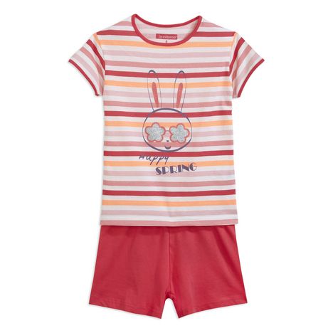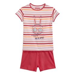 Fun et coloré, les filles porteront ce pyjashort avec plaisir ! Jersey confortable. 100% coton. Haut : rayures colorées, imprimé décoré de paillettes, aucune étiquette dans le cou pour un meilleur confort. Short : uni, taille élastiquée assurant un bon maintien. Ce pyjama short fille est facile d