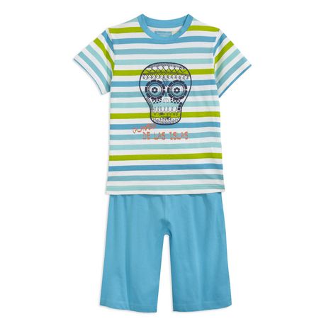 En savoir +Ce pyjashort assure des nuits agréables aux garçons ! 100% coton. Tee-shirt : rayé, manches courtes, col rond avec bande intérieure, imprimé sur le devant, aucune étiquette dans le cou pour un confort complet. Bermuda uni, taille élastiquée assurant un bon maintien. Ce pyjama court garçon est lavable en machine à 40°.