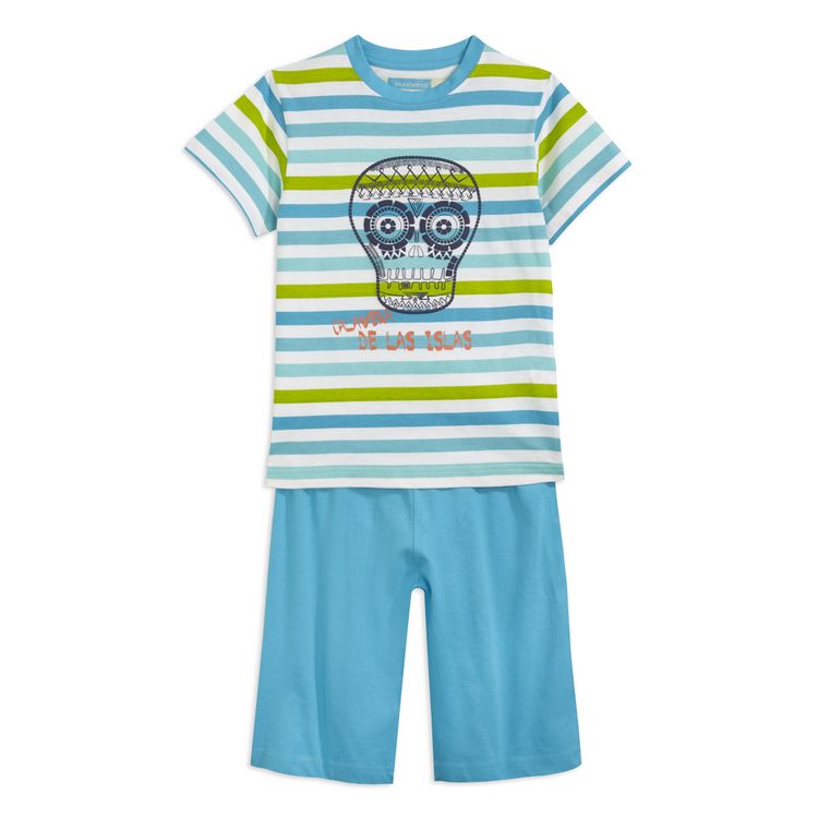Ce pyjashort assure des nuits agréables aux garçons ! 100% coton. Tee-shirt : rayé, manches courtes, col rond avec bande intérieure, imprimé sur le devant, aucune étiquette dans le cou pour un confort complet. Bermuda uni, taille élastiquée assurant un bon maintien. Ce pyjama court garçon est lava