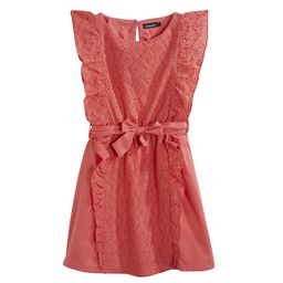 Les filles craquent pour cette robe volantée ! Elle est légère et confortable. On aime : les empiècements avec motifs brodés ajourés et les volants fantaisie. La robe fille dispose d'une ouverture boutonnée en haut du dos, d'une taille élastiquée et d'une ceinture à nouer sur le devant. Cette