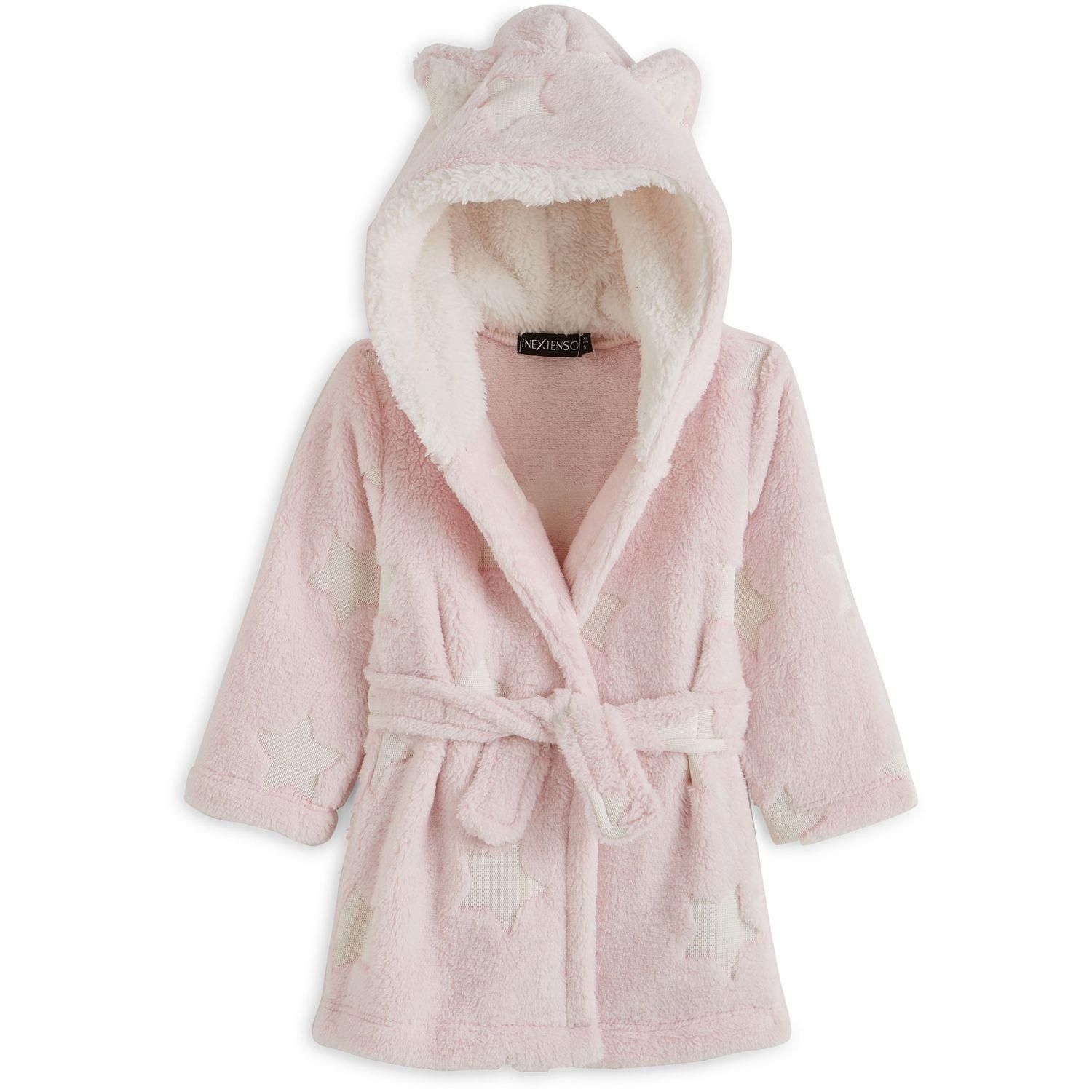 Ultra doux, ce peignoir au motif étoilé saura réchauffer votre bébé à la sortie du bain ! Trop mignonnes les petites oreilles sur la capuche ! La ceinture est cousue pour éviter de la perdre et l’intérieur du peignoir est en matière éponge.