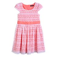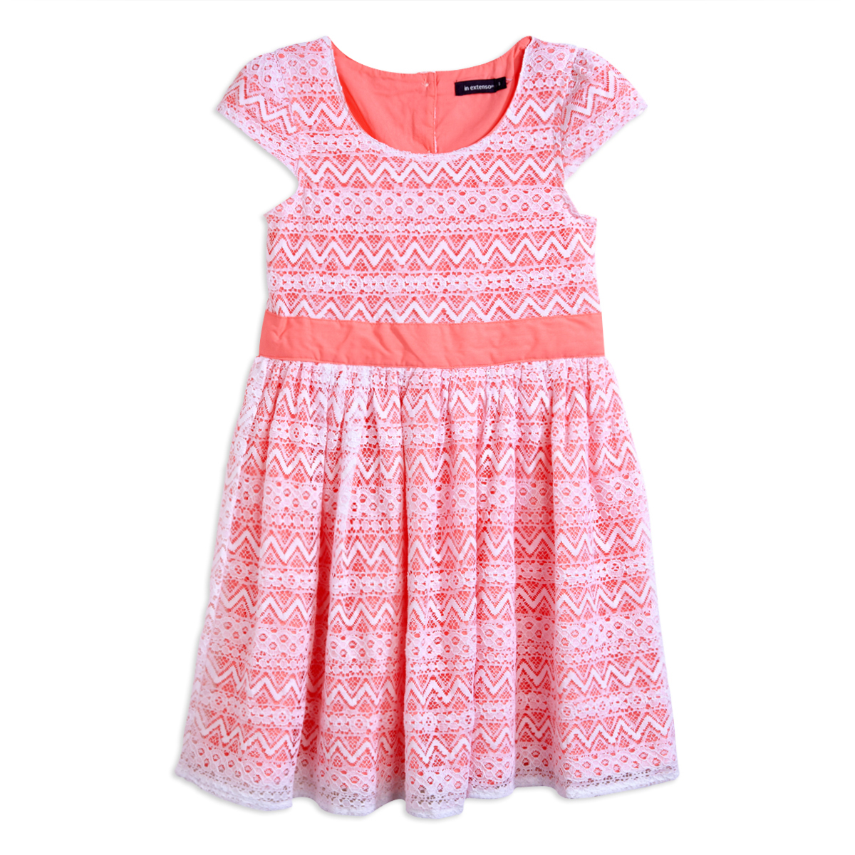 Cette robe se pare de dentelle pour séduire les filles ! Agréable à porter. Dessus recouvert de dentelle. Dessous fluo. Ouverture boutonnée en haut du dos. Manches courtes. Nœud fantaisie au dos. Jeu de plis. Cette robe été fille est lavable en machine à 30°.