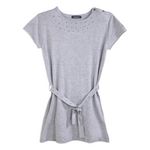Les filles passent en mode hiver avec cette robe en maille fine ultra tendance ! Toucher doux. Agréable à porter. Clous fantaisie sous l'encolure et sur la ceinture à nouer. Col rond. Pratique : ouverture boutonnée sur une épaule. Manches courtes avec finition roulottée. Cette robe fille est l