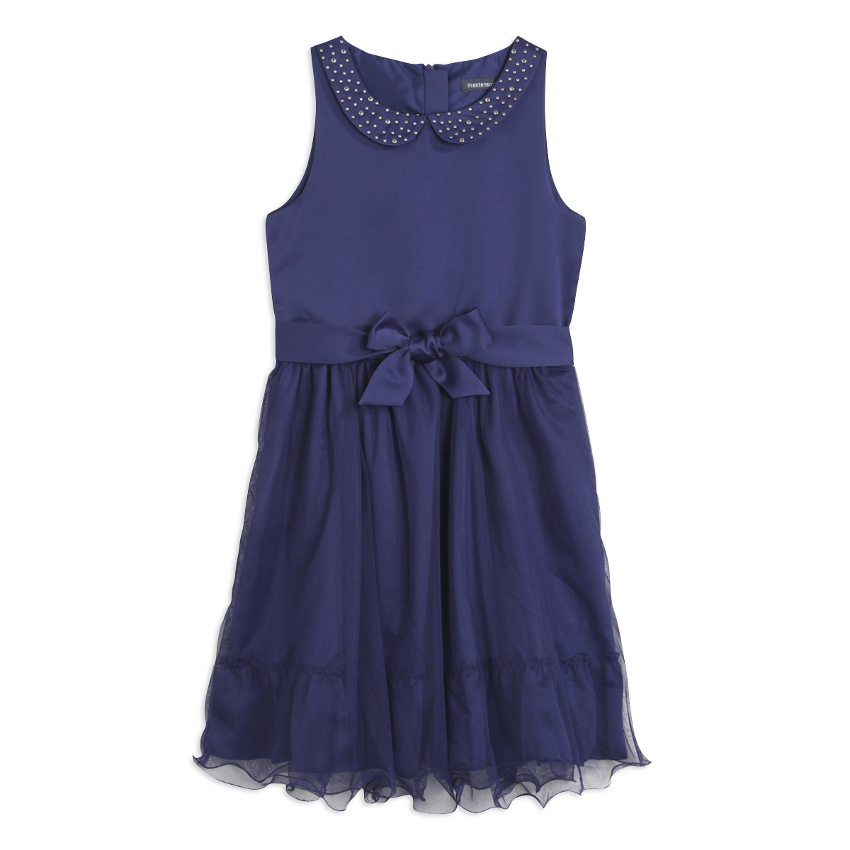 Les filles voudront porter cette robe de fête à la moindre occasion ! Agréable à porter. Col claudine avec clous fantaisie. Ouverture zippée en haut du dos. Nœud fantaisie à la taille. Bas en tulle. Cette robe de fête fille est facile d'entretien.