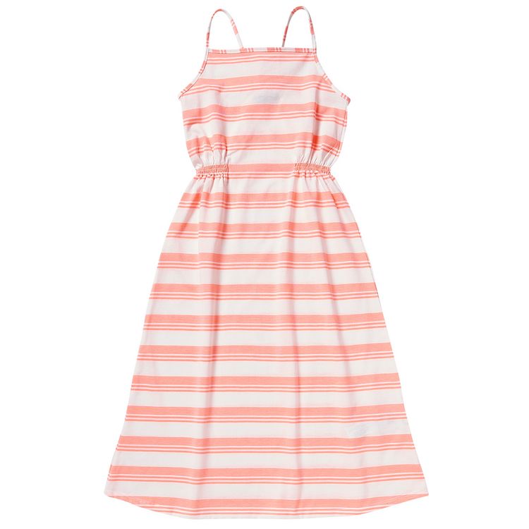 Cette robe longue fille est parfaite pour les journées à la plage ! Elle est légère et confortable. On aime : le jeu de rayures fluo. La robe longue possède des fines bretelles, une taille élastiquée et une base évasée. Elle est facile d'entretien.