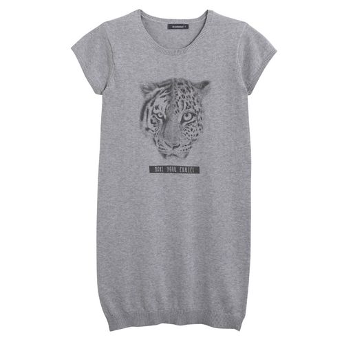 En savoir +Douce et tendance, les filles porteront cette robe en maille durant toute la saison froide ! Maille fine agréable à porter. 100% coton. Imprimé fantaisie sur le devant. Col rond, manches courtes. Finition bords-côtes. Cette robe fille est lavable en machine à 40°.
