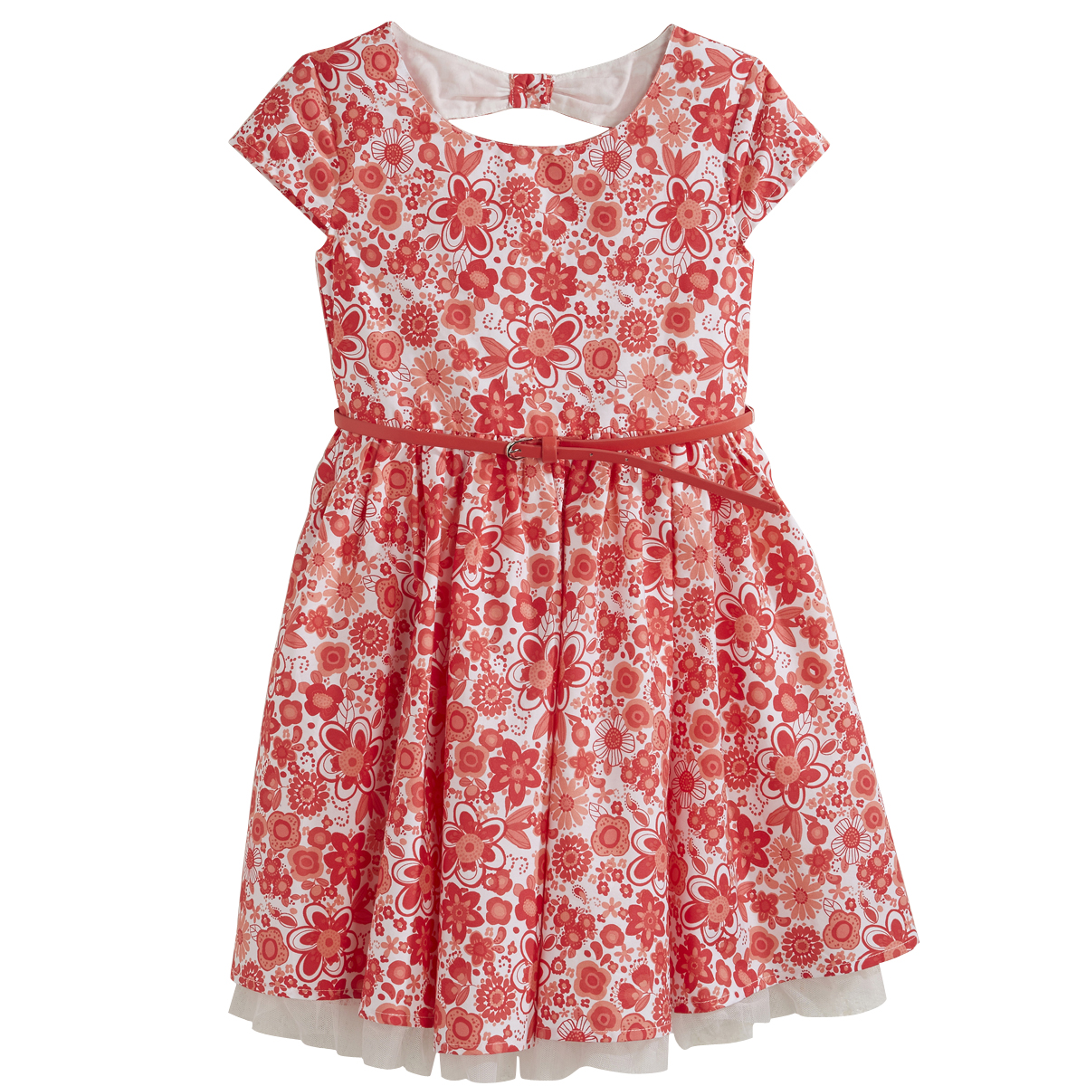 En savoir +On craque pour cette robe imprimée au style délicieusement rétro. Agréable à porter et légère. On aime : son beau volume et son imprimé à fleurs. Doublure avec bord en tulle. Coupe très évasée, col rond, manches courtes, ouverture boutonnée dans le dos. Fine ceinture avec boucle en métal. Jeu de plis à la taille. Cette robe imprimée fille est lavable en machine à 40°.