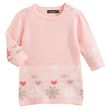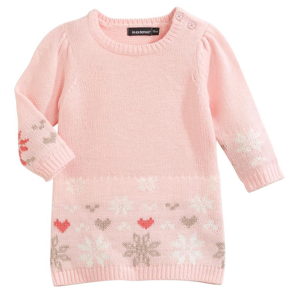 Look chic et chaud pour bébé avec cette robe en tricot. Agréable à porter et chaude. Toucher doux. Col rond, manches longues. Ouverture par 2 boutons légèrement pailletés sur l'épaule. Motifs et fronces fantaisie. Cette robe bébé fille est lavable en machine à 30°.