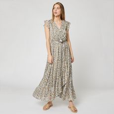 En savoir +Les chaleurs estivales ne vous feront pas peur avec cette robe longue à volants. Elle possède un imprimé fleuri all over et une ceinture assortie. Sa matière est douce et agréable à porter.