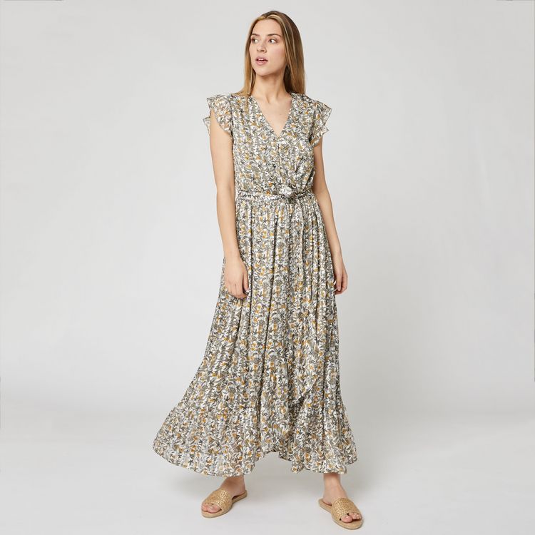 Robe longue avec volants fleurie femme