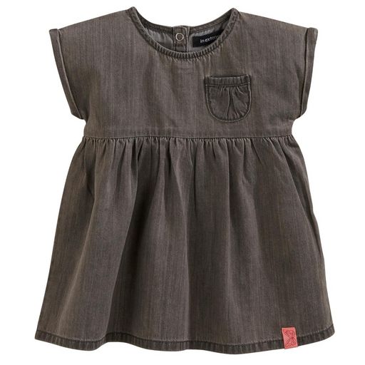 Les mamans craquent pour cette robe en jean bébé à manches courtes ! Denim agréable à porter. 100% coton. Coupe évasée. Col rond, ouverture pressionnée en haut du dos. 1 poche sur la poitrine. Revers aux manches. Petites fronces fantaisie. Etiquette cousue à la base. Cette robe en jean bébé es