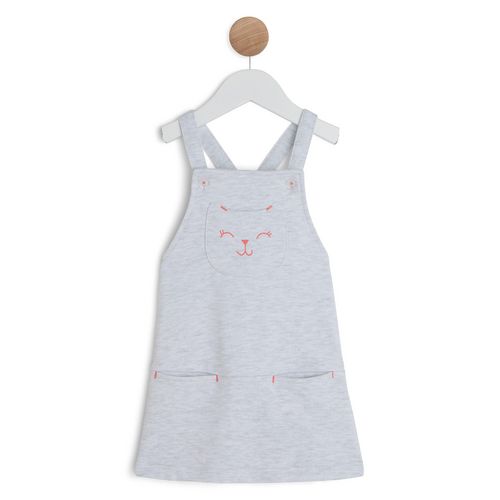 Votre petite princesse sera plus craquante que jamais avec cette robe coupe salopette en molleton chiné ! On note : la matière extensible qui offre un confort parfait, les poches fantaisie et le motif chat devant. La longueur des bretelles est ajustable par boutons devant.