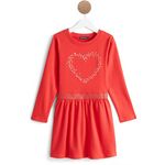Habillez vos princesses pour les repas de fin d'année avec cette superbe robe de fêtes! Cette robe à manches longues en molleton est chaude et super confortable. Elle est très agréable à porter et est dotée d'une finition bord-côte élastiquée sur le col. La taille resserrée et élastiquée de la robe sublimera la silhouette de votre petite fille! Son large élastique pailleté apporte une touche festive qui plaira à votre fille. On adore l'adorable motif "cœur" en relief.