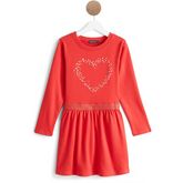 Habillez vos princesses pour les repas de fin d'année avec cette superbe robe de fêtes! Cette robe à manches longues en molleton est chaude et super confortable. Elle est très agréable à porter et est dotée d'une finition bord-côte élastiquée sur le col. La taille resserrée et élastiquée de la robe sublimera la silhouette de votre petite fille! Son large élastique pailleté apporte une touche festive qui plaira à votre fille. On adore l'adorable motif "c?ur" en relief.