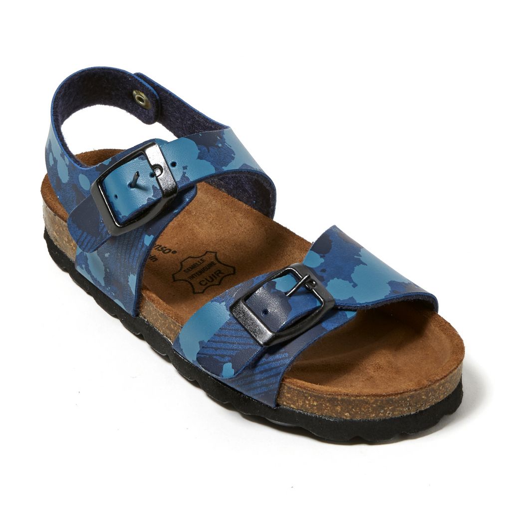 En savoir +Les garçons sont prêts pour la belle saison avec ces sandales imprimées. Elles sont confortables et faciles à enfiler. On adore le jeu de brides sur le dessus. Ouverture double par pattes avec boucle en métal. Intérieur : doublure douce en textile, semelle ergonomique en cuir pour le confort du pied. Semelle intermédiaire en liège. Ces nu-pieds garçon possèdent une semelle extérieure élastomère antidérapante.
