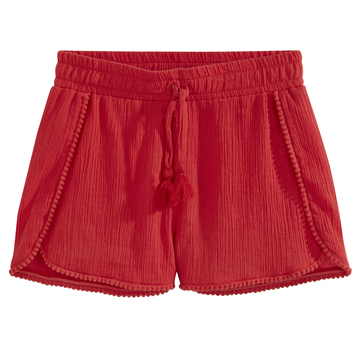 On craque pour ce short fille léger et confortable ! Le plus : cordon avec franges fantaisie. Matière crêpe. Taille élastiquée. Finition fantaisie sur les bords. Ce short fille est lavable en machine à 40°.