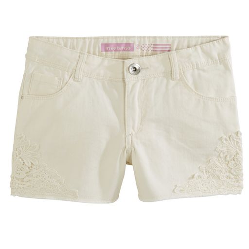 Avec ses empiècements brodés sur les côtés, ce short fille aura beaucoup de succès ! Agréable à porter et doux. 100% coton. Empiècements brodés et ajourés appliqués sur les côtés. Taille ajustable par un élastique et des boutons intérieurs, c'est pratique. Ouverture par bouton et zip. 5 poches. F