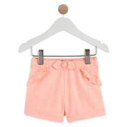 Ce joli short annonce la belle saison pour notre petite princesse ! On aime la forme droite, les volants au niveau des poches et les revers cousus dans le bas. La taille est élastiquée pour plus de confort et un habillage facile, et possède un nœud trop mignon placé devant !