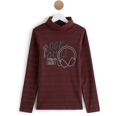 Les garçons optent pour un look cool et décontracté au quotidien avec ce t-shirt rayé manches longues animé d'un message fantaisie devant. Il est doté d?un col roulé pour parer du froid. Ce t-shirt garçon ne présente pas d?étiquette dans le cou mais un tampon pour plus de confort.