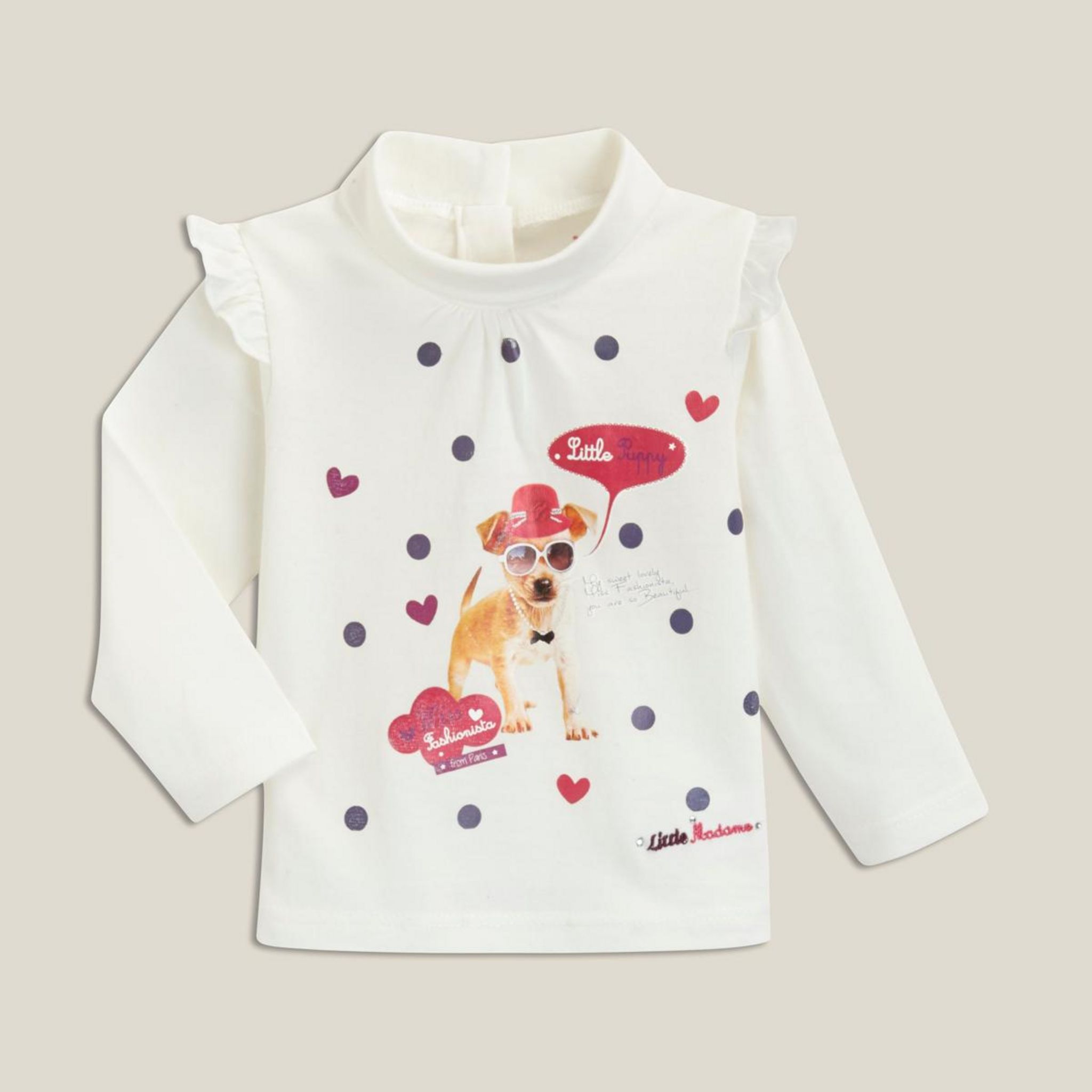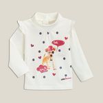 On craque pour les détails et l'imprimé fantaisie de ce sous-pull bébé ! 100% coton, agréable à porter. Pressions à mi-dos, c'est pratique. Col roulé animé de petites fronces. Mini volants sur les épaules. Inscription brodée ornée de petits strass. Pas d'étiquette dans le cou pour un confort complet