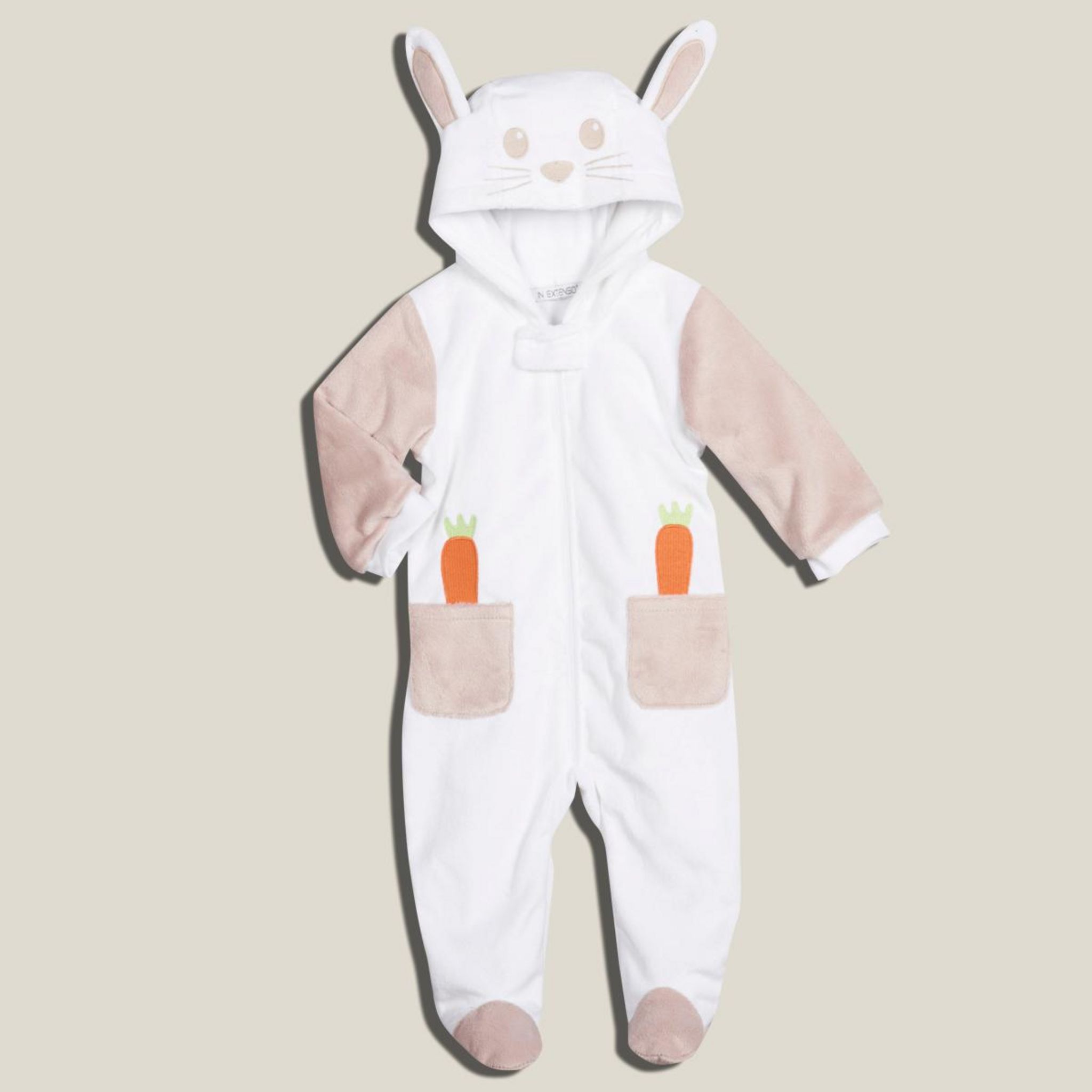 On adore le style ludique de ce surpyjama bébé 100% lapin. Doublure pur coton. Surpyjama ultra-doux en fausse fourrure. Agréable à porter. Ouverture zippée. 1 patte pressionnée au col. 2 poches. Oreilles et broderie fantaisie. Poignets bords-côtes. Ce surpyjama à capuche bébé est lavable en machine