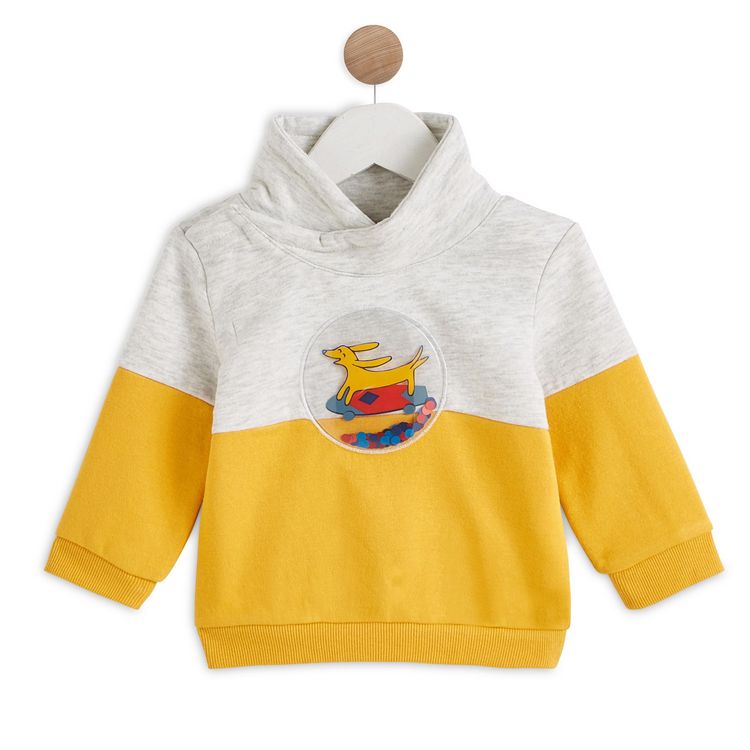 En savoir +Trop rigolo, ce sweat à capuche bicolore affiche un drôle de motif chien flottant dans une bulle remplie de paillettes ! Confectionné dans un beau molleton douillet, ce sweat bicolore est parfait par tous les temps.